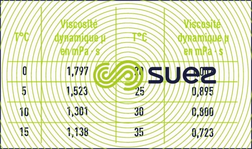 La viscosité de l’eau diminue lorsque la température croît (tableau 2). En revanche, elle augmente avec la teneur en sels dissous ; l’eau de mer est donc plus visqueuse que l’eau de rivière (tableau 3).
